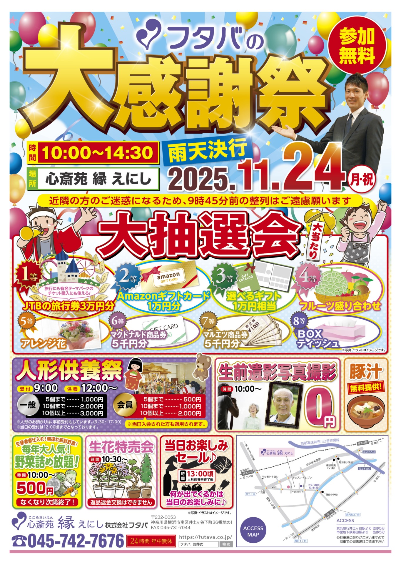 日頃のご愛顧に感謝を込めて、今年もフタバの大感謝祭を開催いたします。